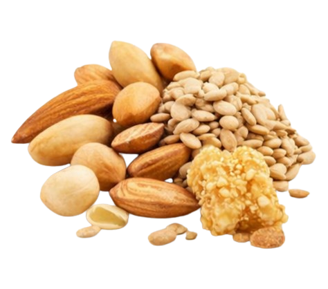 Alsi (Flaxseed), Asli Desi Ghee, Phool Makhany, Char Maghaz, Peanuts, Desi Ghur & Atta (Flour)